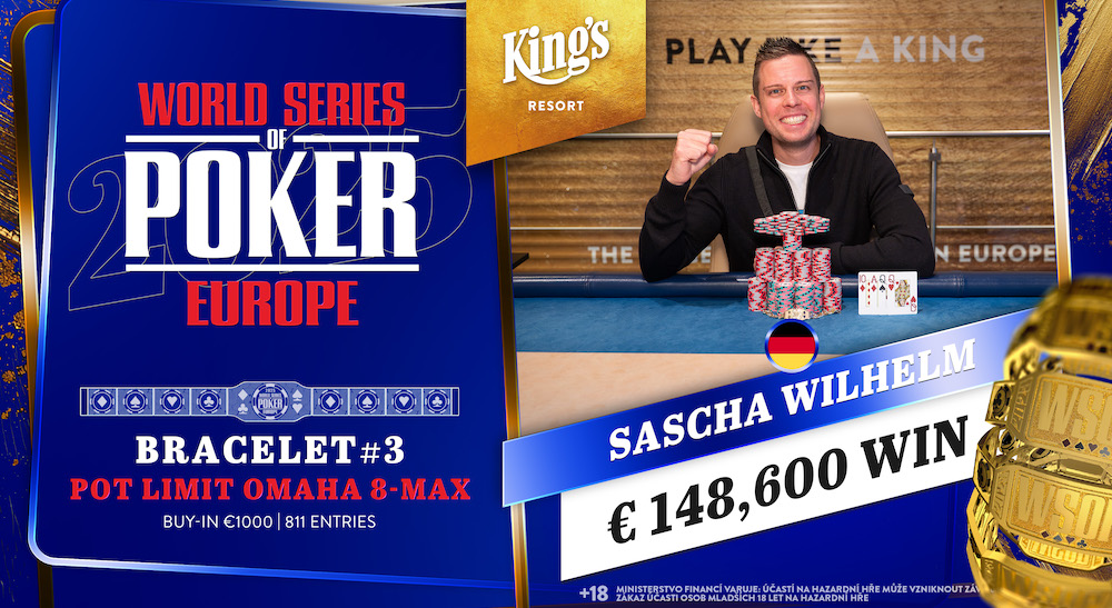 Assegnato il terzo braccialetto alle World Series of Poker Europe del King’s Resort di Rozvadov e il timbro è tedesco con il successo di Sascha Wilhelm che si porta a casa il prezioso gioiello da campione del mondo e una prima moneta da 148.600 euro.