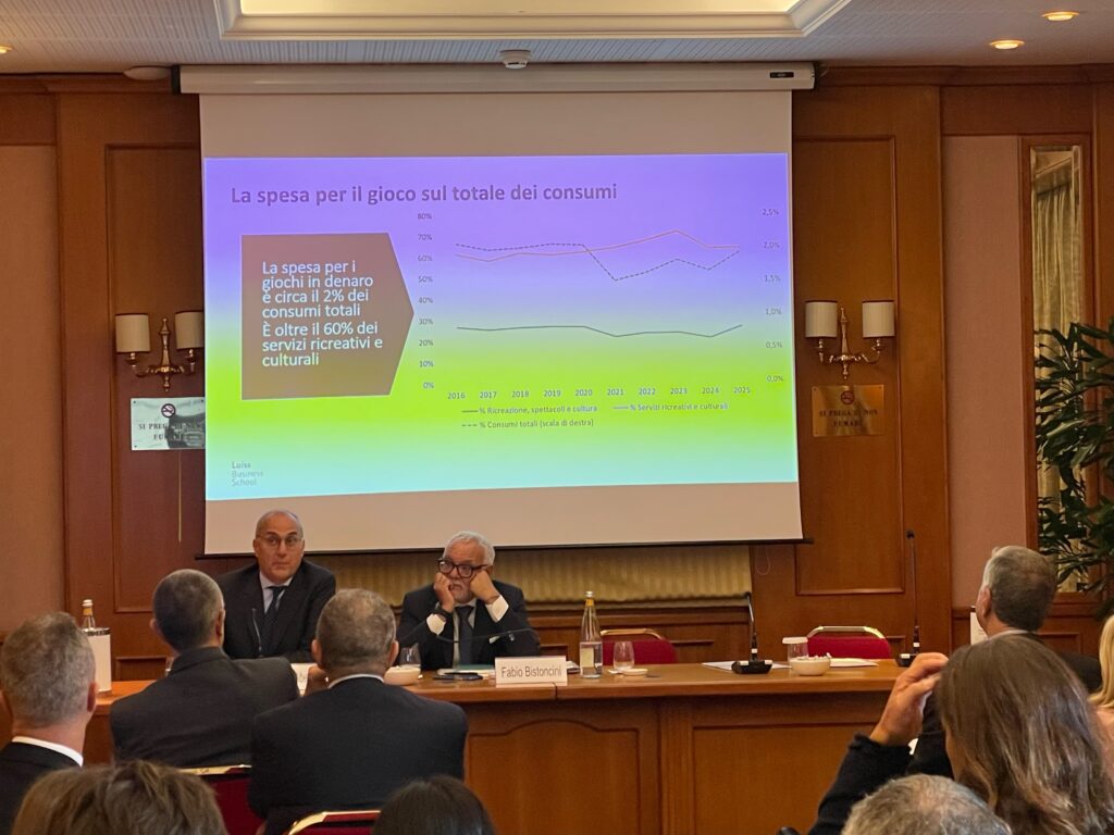 Gli interventi di Giuliano Guinci (Eurobet Italia) e di Matteo Caroli (Luiss Business School) nella giornata di lavori sul gioco organizzata da Agic.