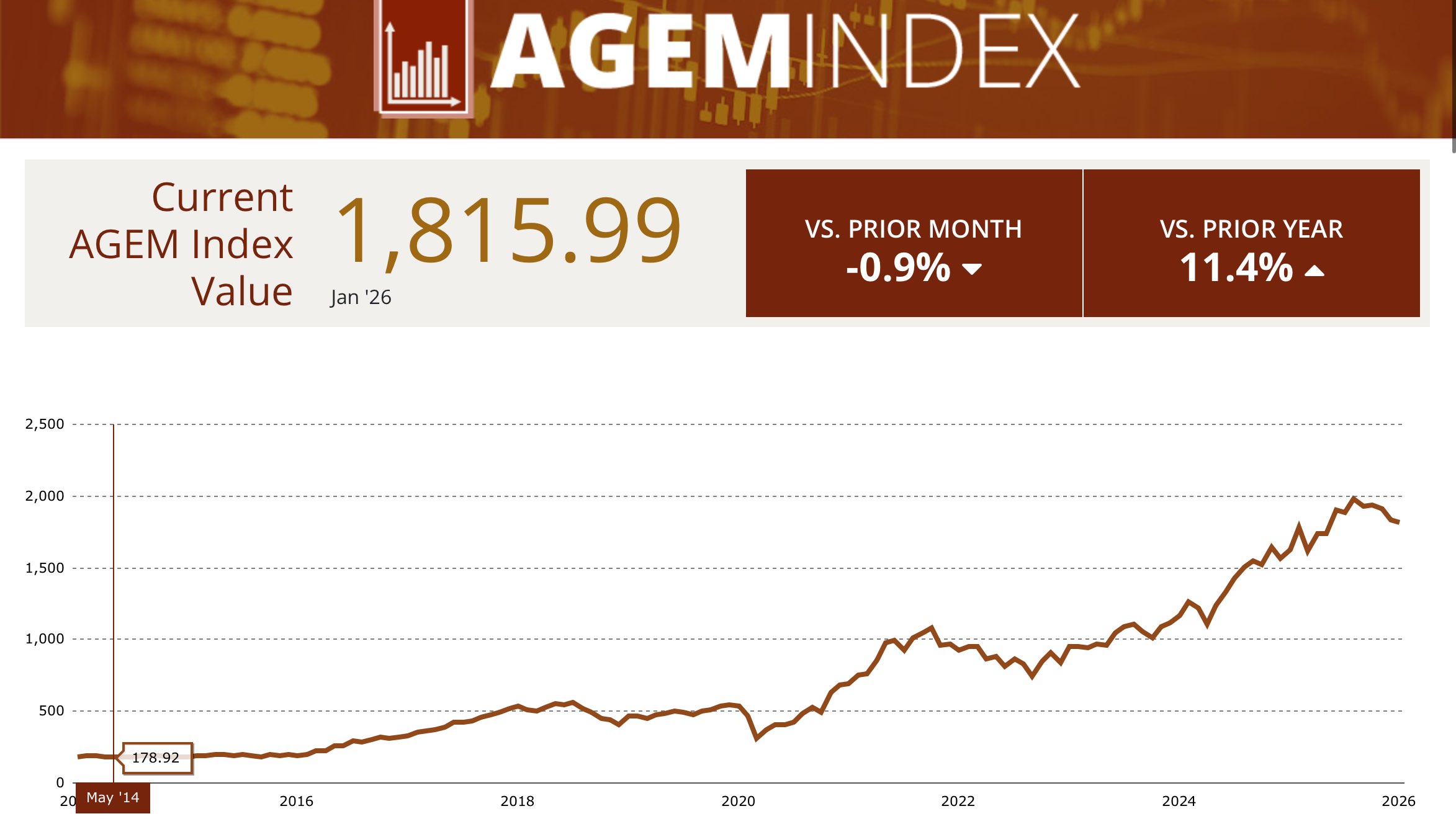 L’indice Agem, che misura il mercato dei giochi, è sceso di 15,69 punti a 1,815.99 a gennaio 2026, mostrando un calo dello 0,9 percento rispetto al mese precedente. Sul 2025, invece, l’indice è salito dell’11,4 per cento, di 185,99 punti.
