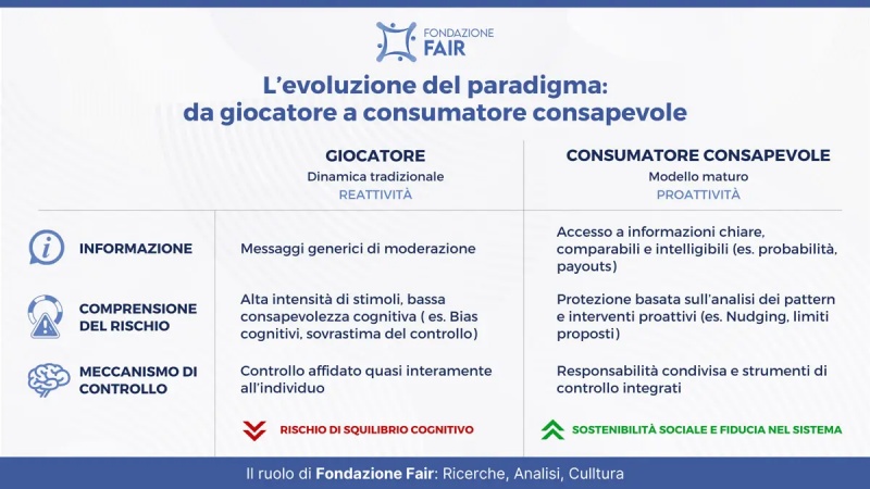 Il nuovo editoriale di Stefano De Vita, direttore generale della Fondazione Fair, che propone una riflessione sull’evoluzione possibile del settore: passare dalla figura del “giocatore” a quella di consumatore, con diritti, informazioni e strumenti di tutela più chiari.