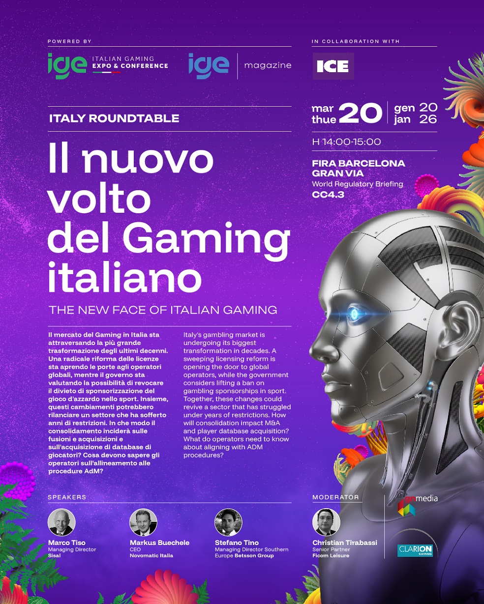 Focus also on Italy, in the upcoming edition of ICE Barcelona now approaching. This is thanks to the round table organized for January 20 from 2 PM to 3 PM, in collaboration with IGE – Italian Gaming Expo & Conference / IGE Magazine and titled “The New Face of Italian Gaming.” A title that aptly represents the situation of the Gaming market in Italy, which is indeed undergoing the greatest transformation in recent decades.